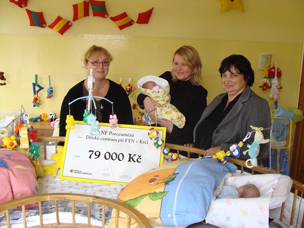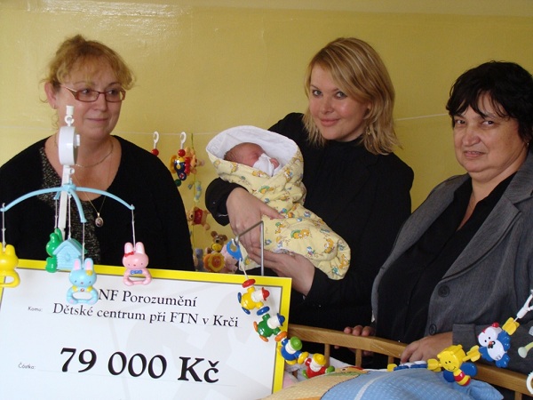 Dětské centrum při FTN obdrželo finanční dar v celkové výši 79.000,-Kč!!! Tyto prostředky budou využity na nákup vícekapacitních kočárků, CRP setu (přístroje k šetrnému bezbolestnému odběru a vyhodnocení krve u dětí) a také na provoz dětského centra s komplexní péčí a podpůrnou rodinnou terapií.