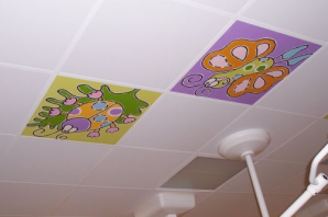 Jedná se o obrázky, které jsou zavěšeny na zdech a stropu oddělení JIRP. A které alespoň trochu zpříjemňují pobyt dětí v nemocničním prostředí...